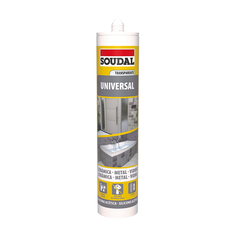 Silicona muy elástica. Ideal para aplicaciones generales de construcción, puesto que se puede utilizar tanto para juntas interiores como exteriores. Sin embargo, por su contenido de ácido acético, esta silicona no debe utilizarse en soportes de material sintético. La silicona universal no se puede pintar.